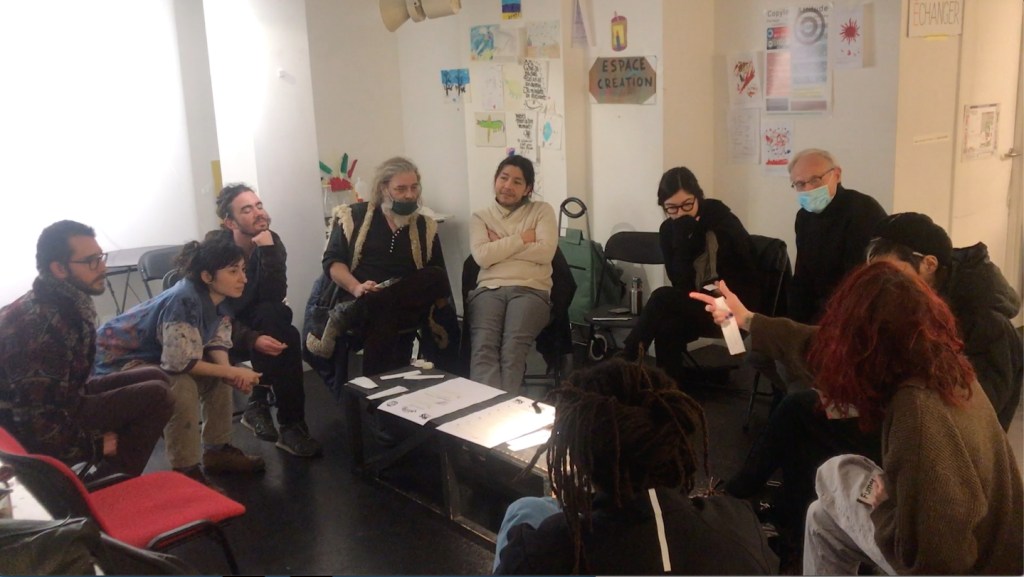 Le débat est mené à partir de flyer d’hypothèses que les participant.e.s choisissent comme embrayeurs de récits. Avec entre autres : Paul Navas, Ghislain Mollet-Viéville, Mélaine Loison, Mostaza Zareta, Aurore Chevalier…