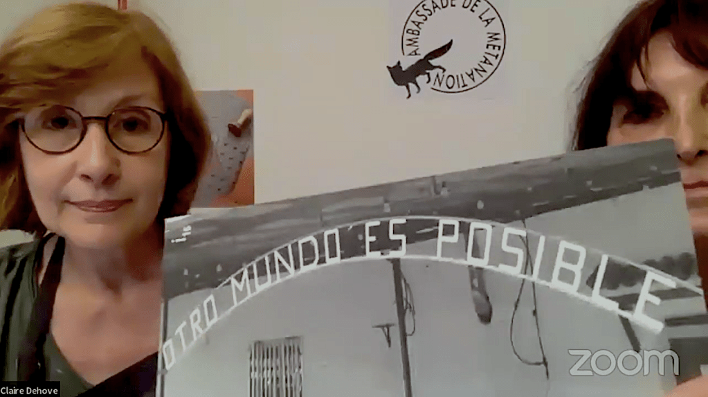 Invitée par Ruedi & Vera Baur, Esteban Gonzalez & Claudia Cano pendant la Nuit des Alter-Réalités à Porto, l’Ambassade convie les Ambassadrices Claire Dehove & Monica Espina, à palabrer avec Eric Letourneau, technicien de surface vivante, Victor Fajardo, chargé des affaires imagées et Amène Renart, transanimal furtif, autour des valeurs humaines, animales,végétales et élémentaires de la MétaNation.