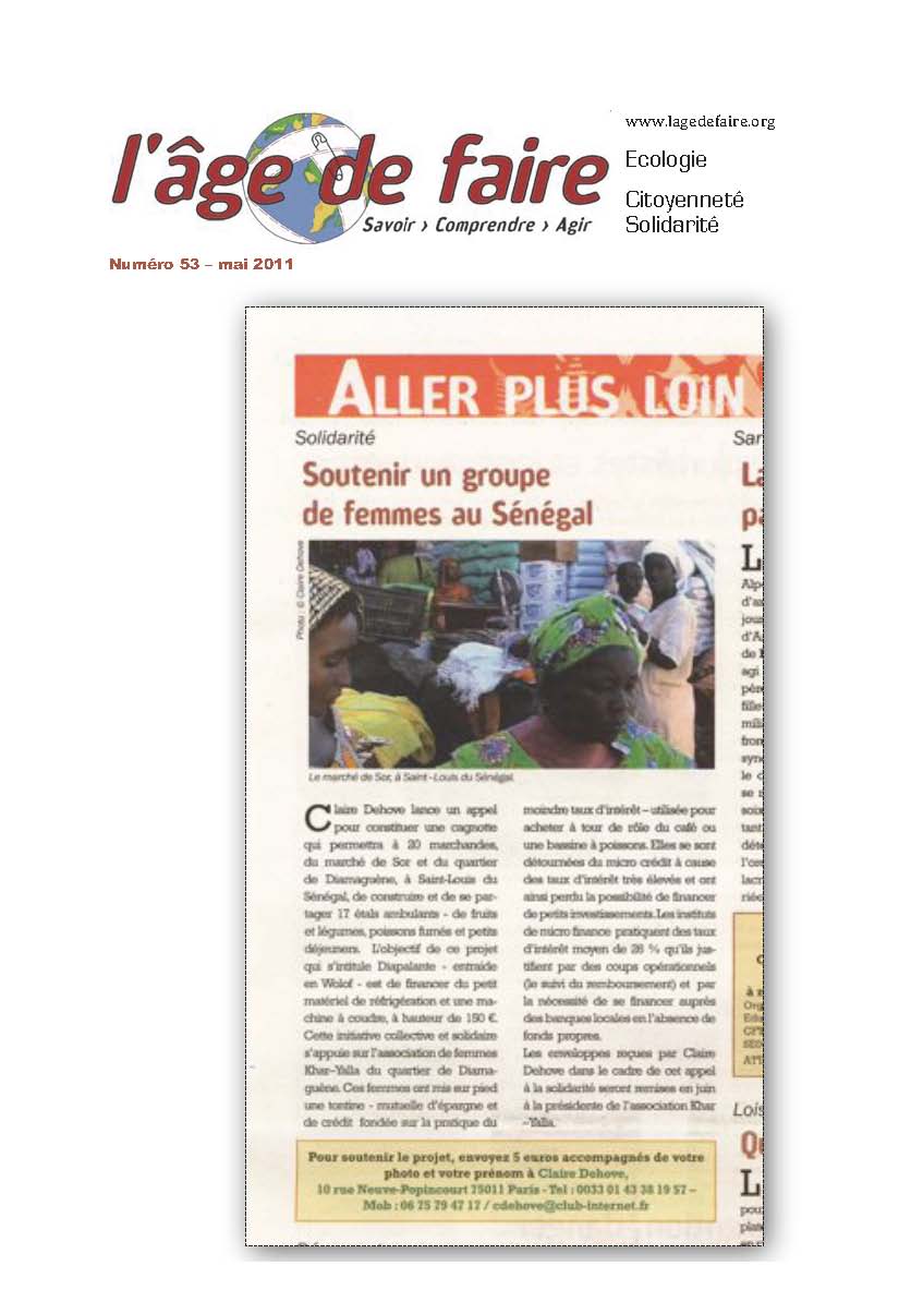 Soutenir un groupe de femmes au Sénégal, L’age de faire, Savoir, Comprendre, Agir, Numéro 53, Mai 2011.