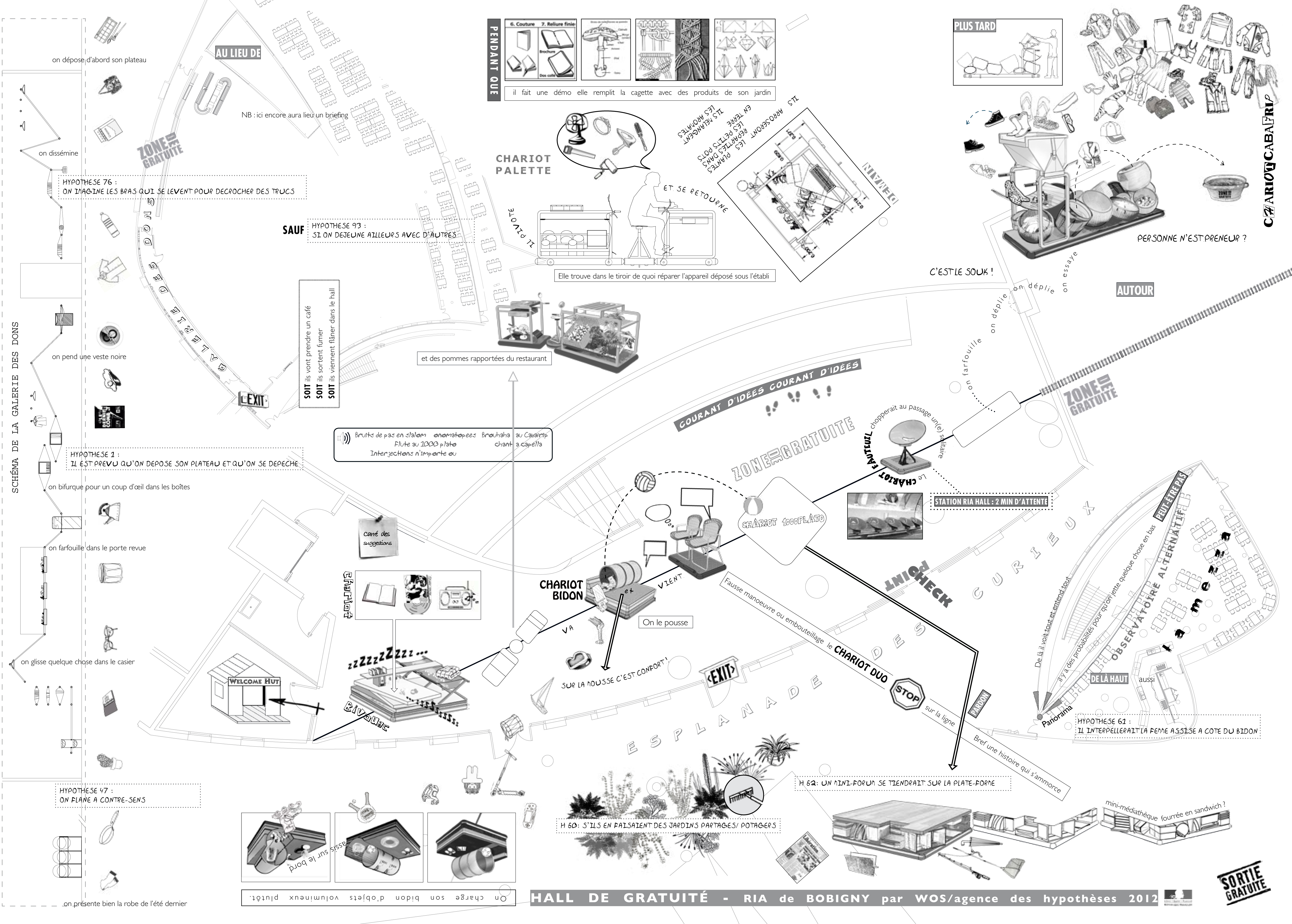 Set du RIA, de WOS/agence des hypothèses pour le Restaurant Inter-Administratif de Bobigny, dans le cadre de Hall de Gratuité, 1% artistique, IN Opticalsound n°1, art et musique, revue d’artiste imaginée et réalisée par Pierre Beloüin, P. Nicolas Ledoux et Pascal Béjean, 2013.
