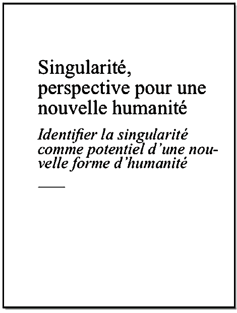 L’Ambassade de la MétaNation, manœuvre vers une transformation individuelle et collective, in Singularité, perspective pour une nouvelle humanité, édition IRISA / Institut de Recherche Internationale en Anthropologie de la Singularité