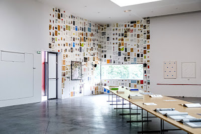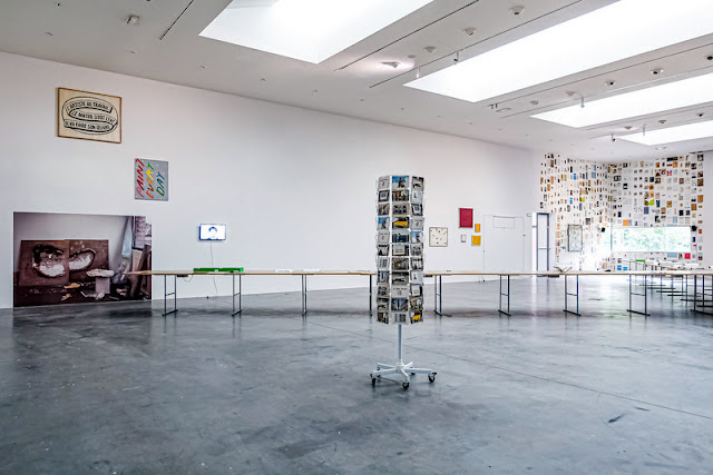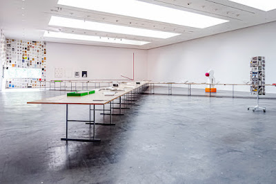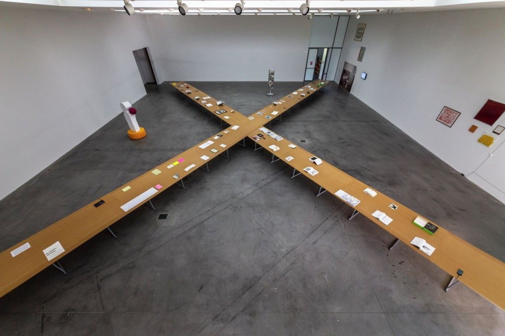 Cette manière d’exposer à tour de rôle chaque élément mettra l’accent sur la durée concrète du temps de travail. Et dans cet étalement, chaque partie vaudra pour le tout. Les travaux originaux, les éditions, les documents et reproductions sont présentés à égalité afin de placer le temps avant l’espace et de mettre la matérialité au second plan.