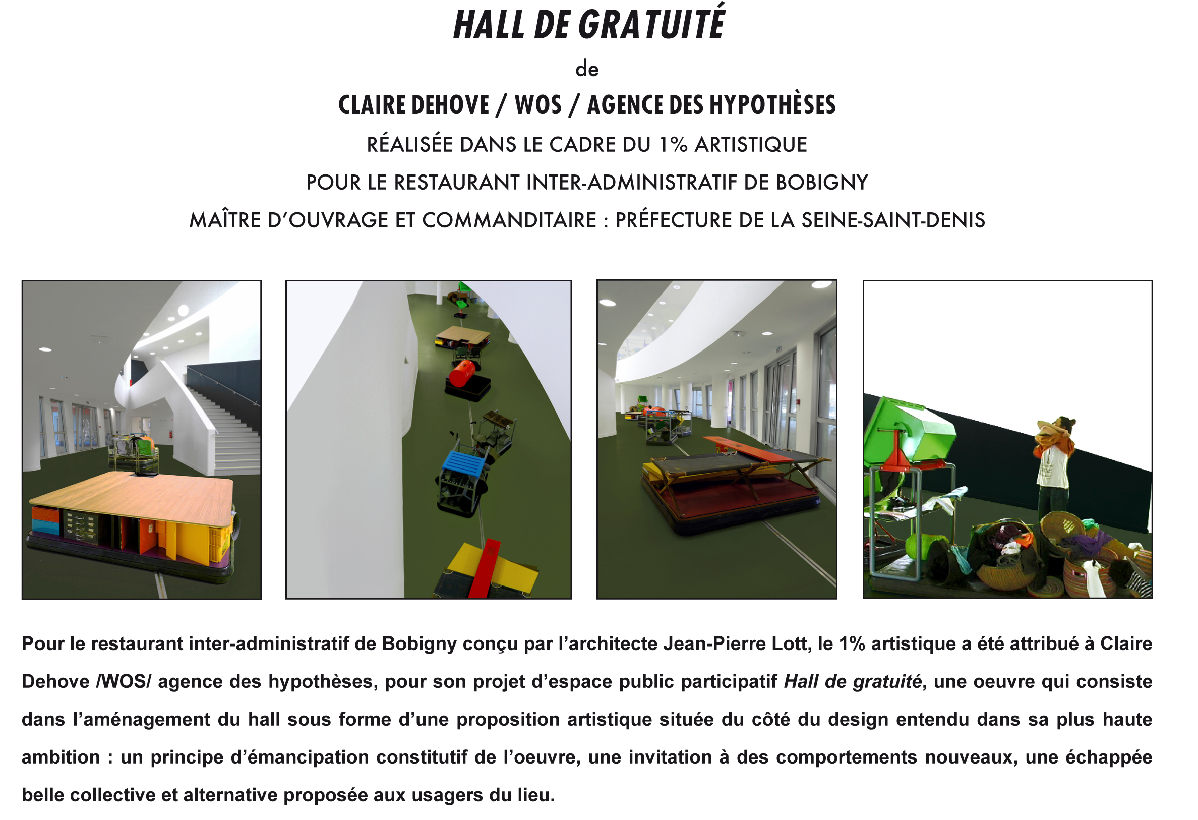 Set du RIA, de WOS/agence des hypothèses pour le Restaurant Inter-Administratif de Bobigny, dans le cadre de Hall de Gratuité, 1% artistique, IN Opticalsound n°1, art et musique, revue d’artiste imaginée et réalisée par Pierre Beloüin, P. Nicolas Ledoux et Pascal Béjean, 2013.